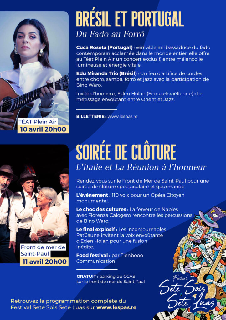 Cuca Roseta : L’âme de Lisbonne pour la première fois à La Réunion. Véritable icône du fado contemporain, Cuca Roseta est bien plus qu’une voix : c’est une émotion à l’état pur. Acclamée sur les plus grandes scènes internationales, elle incarne avec une élégance rare le renouveau de la musique portugaise. Si elle maîtrise à la perfection les codes de la tradition, sa musique s’ouvre audacieusement au monde, portée par une voix cristalline qui touche directement au cœur. Pour cette première date exclusive à La Réunion, préparez-vous à un voyage intense. Entre mélancolie lumineuse (la fameuse saudade) et énergie vitale, Cuca Roseta vous promet une soirée bouleversante de beauté et de sincérité. Un rendez-vous immanquable pour les amoureux de grandes voix.